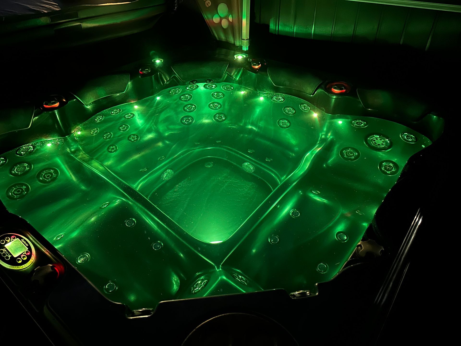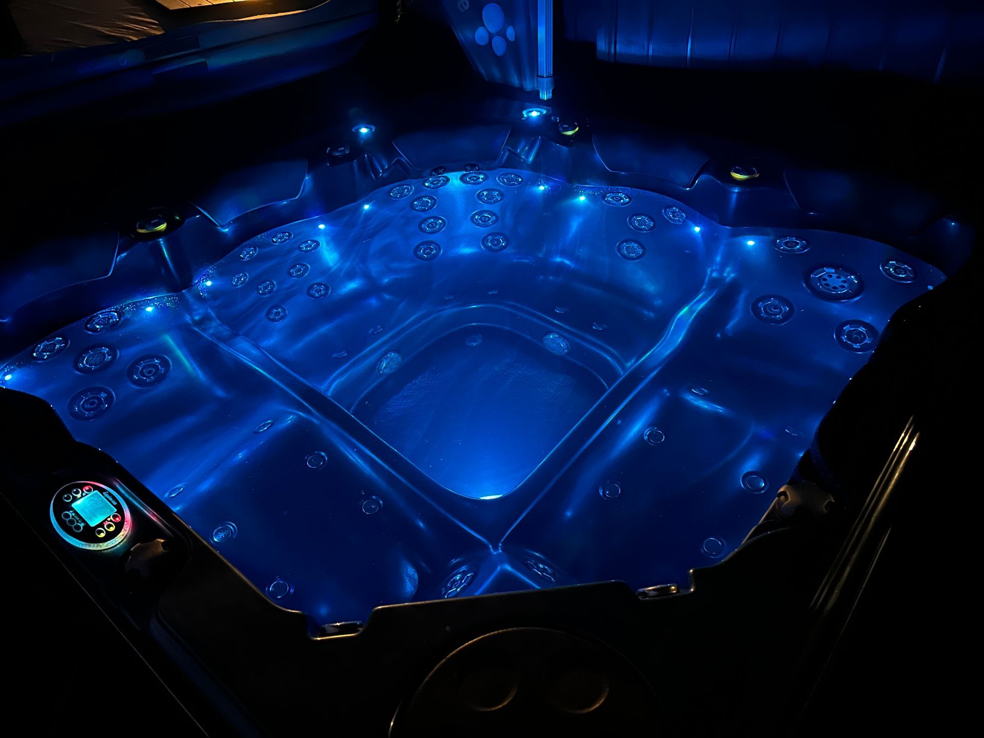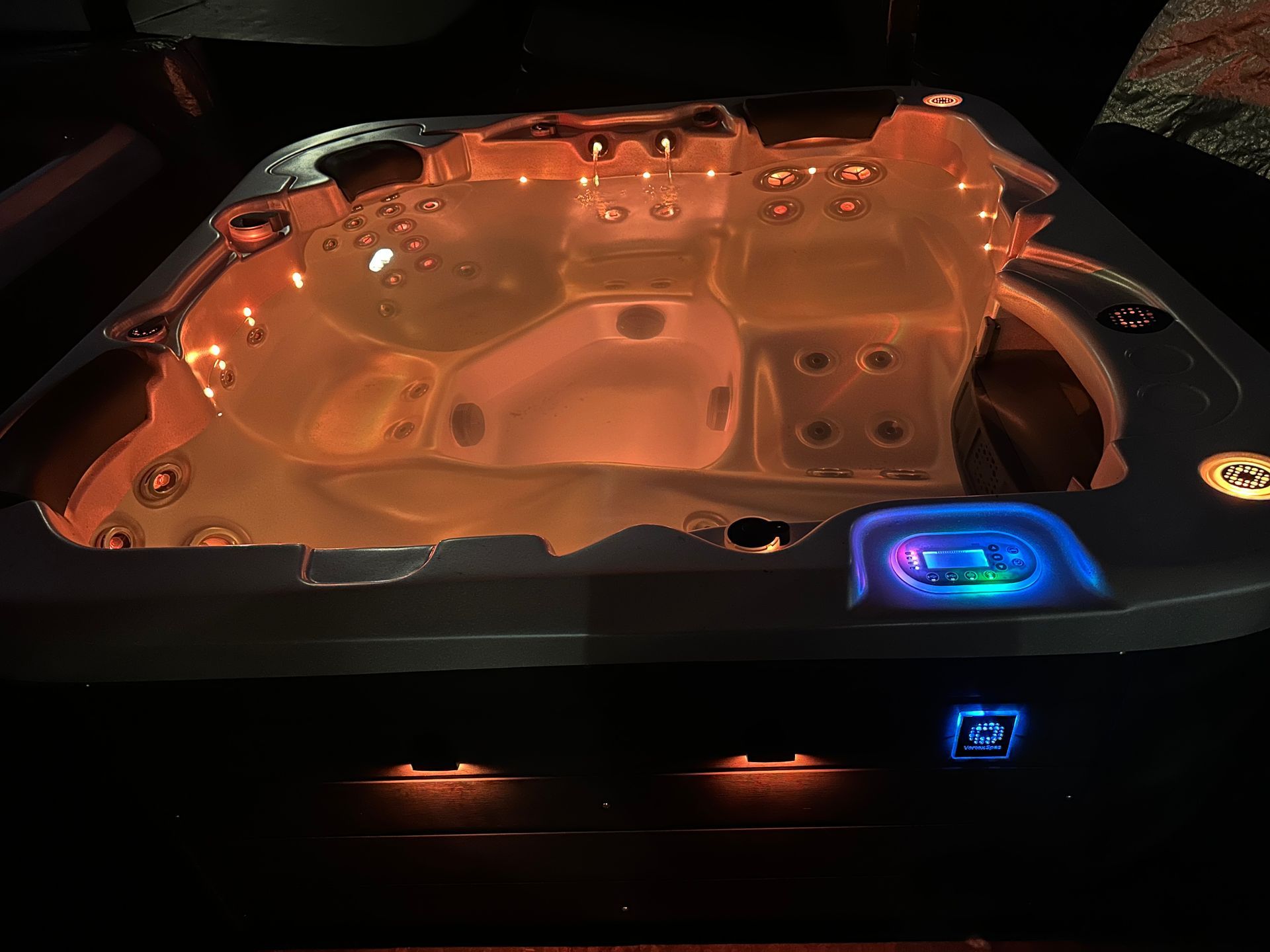 * Hydroglow LED colour change perimeter lighting, backlit jets and topside controls, cabinet lighting.
