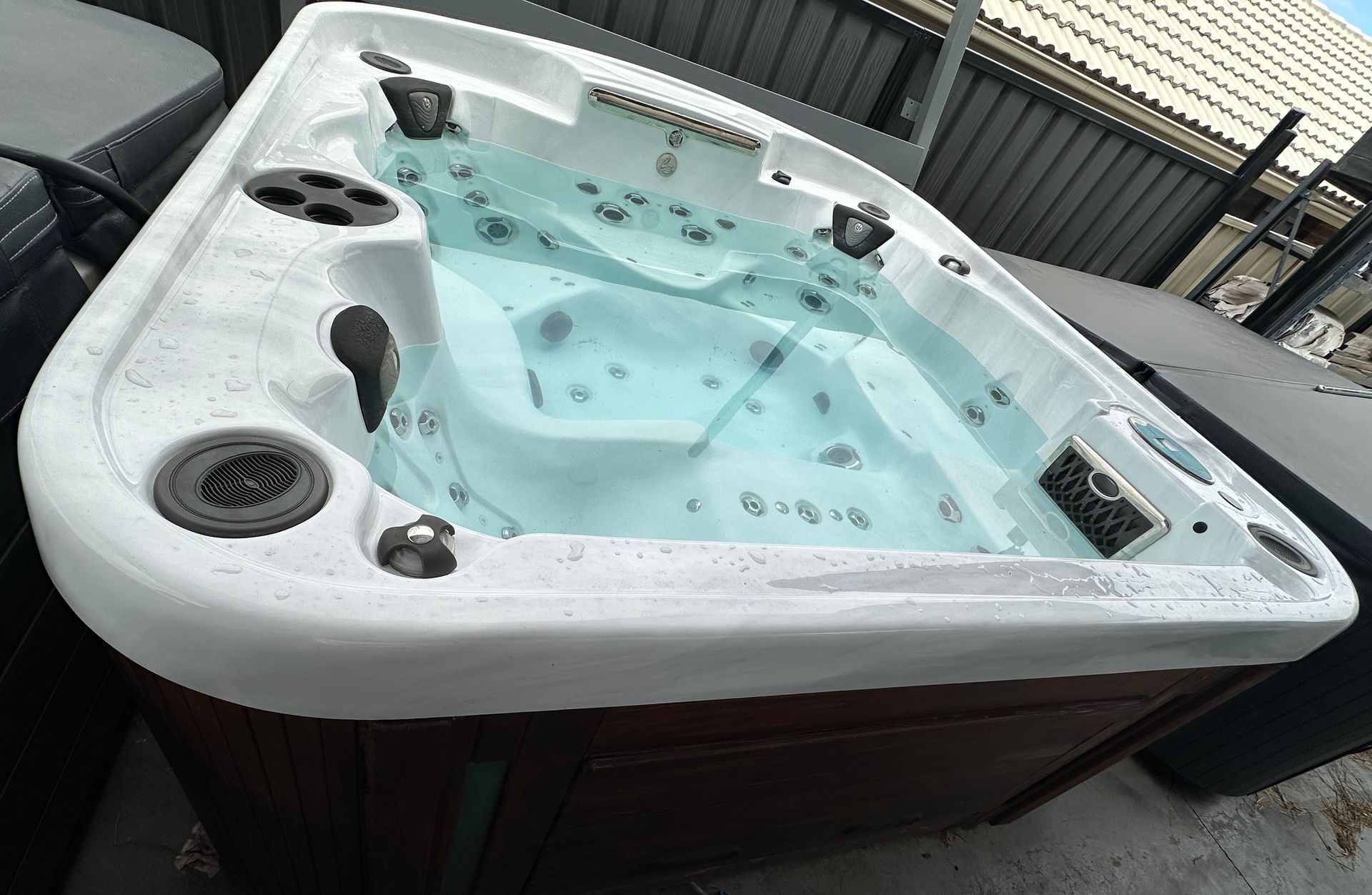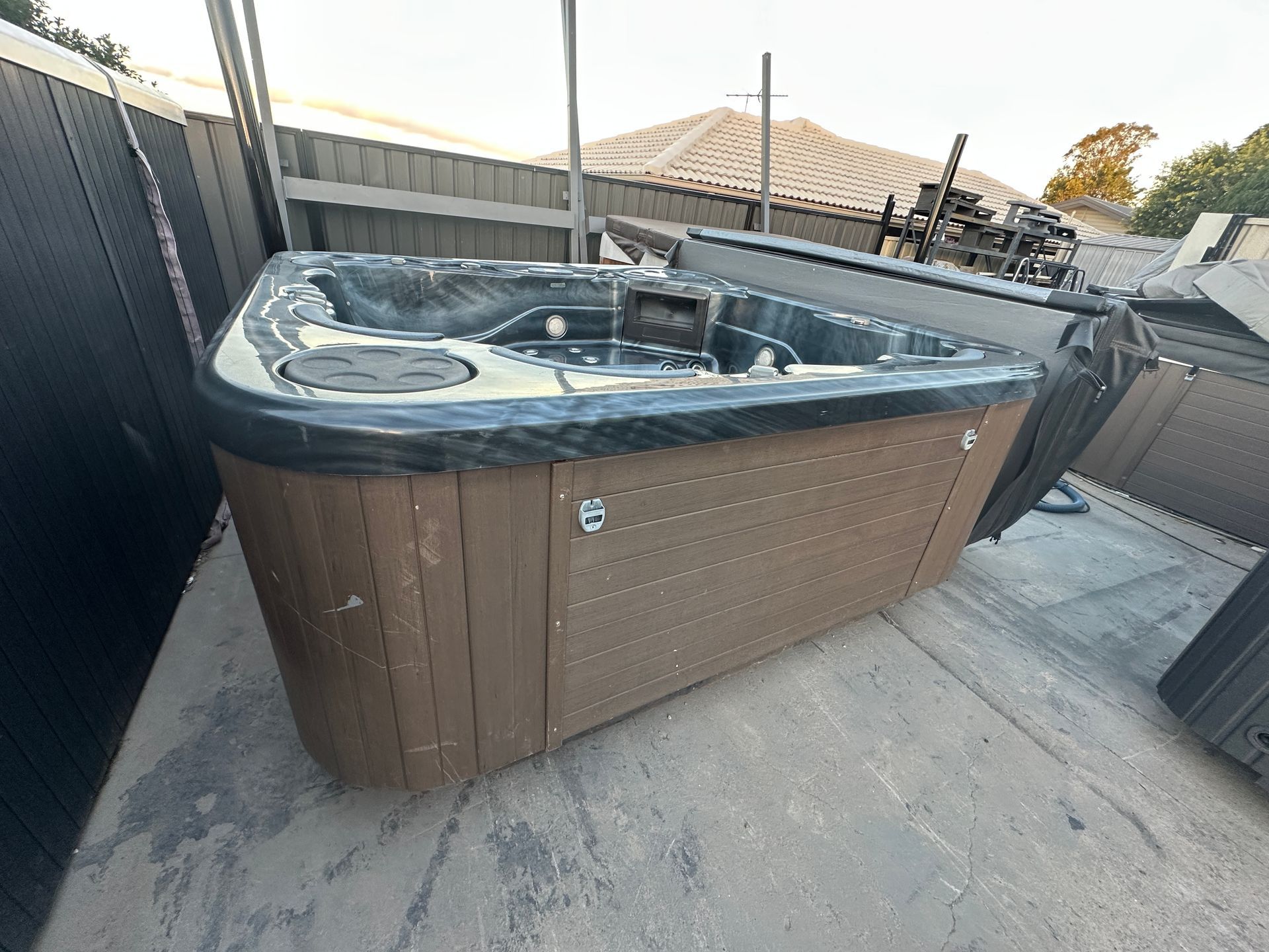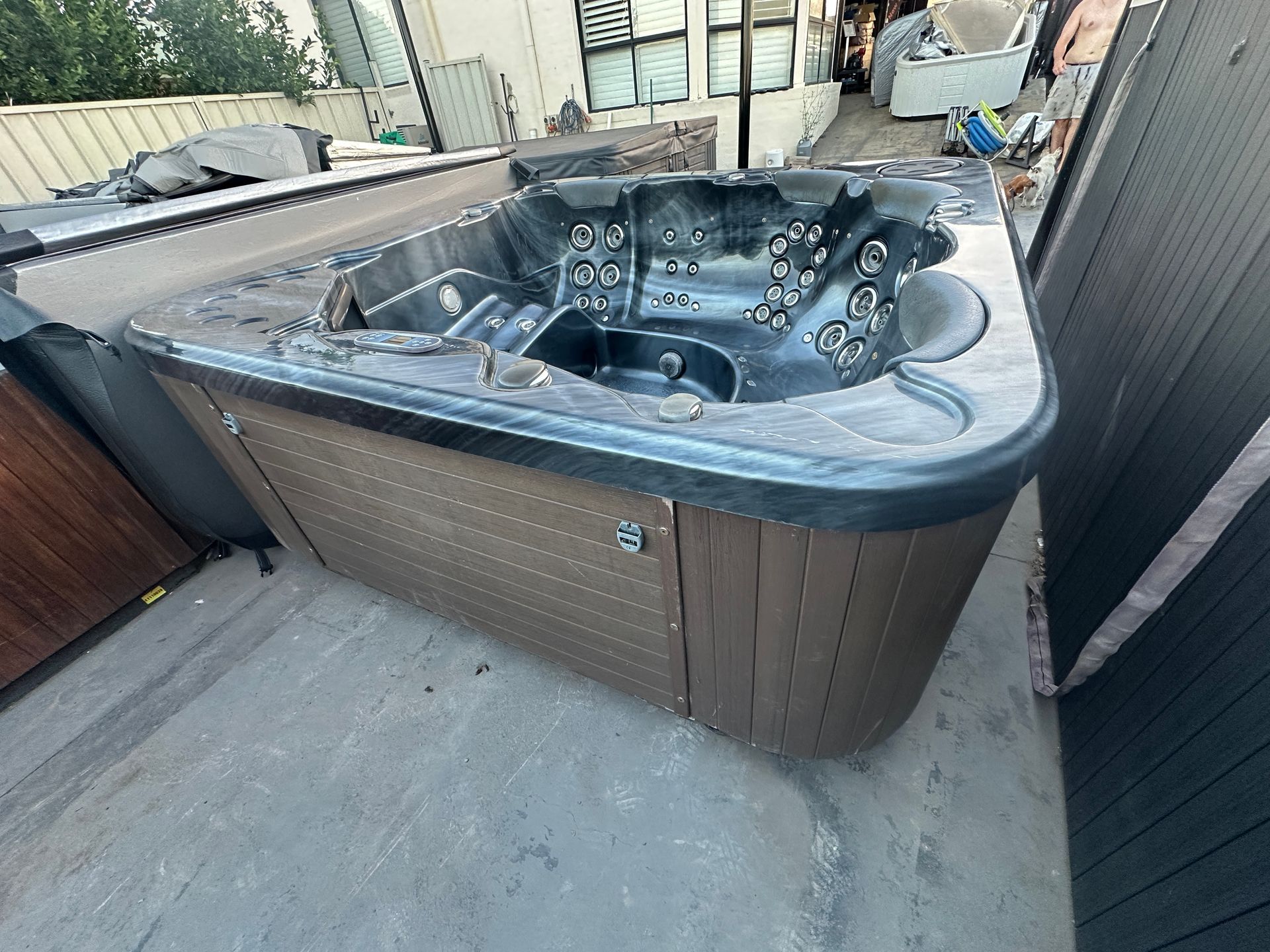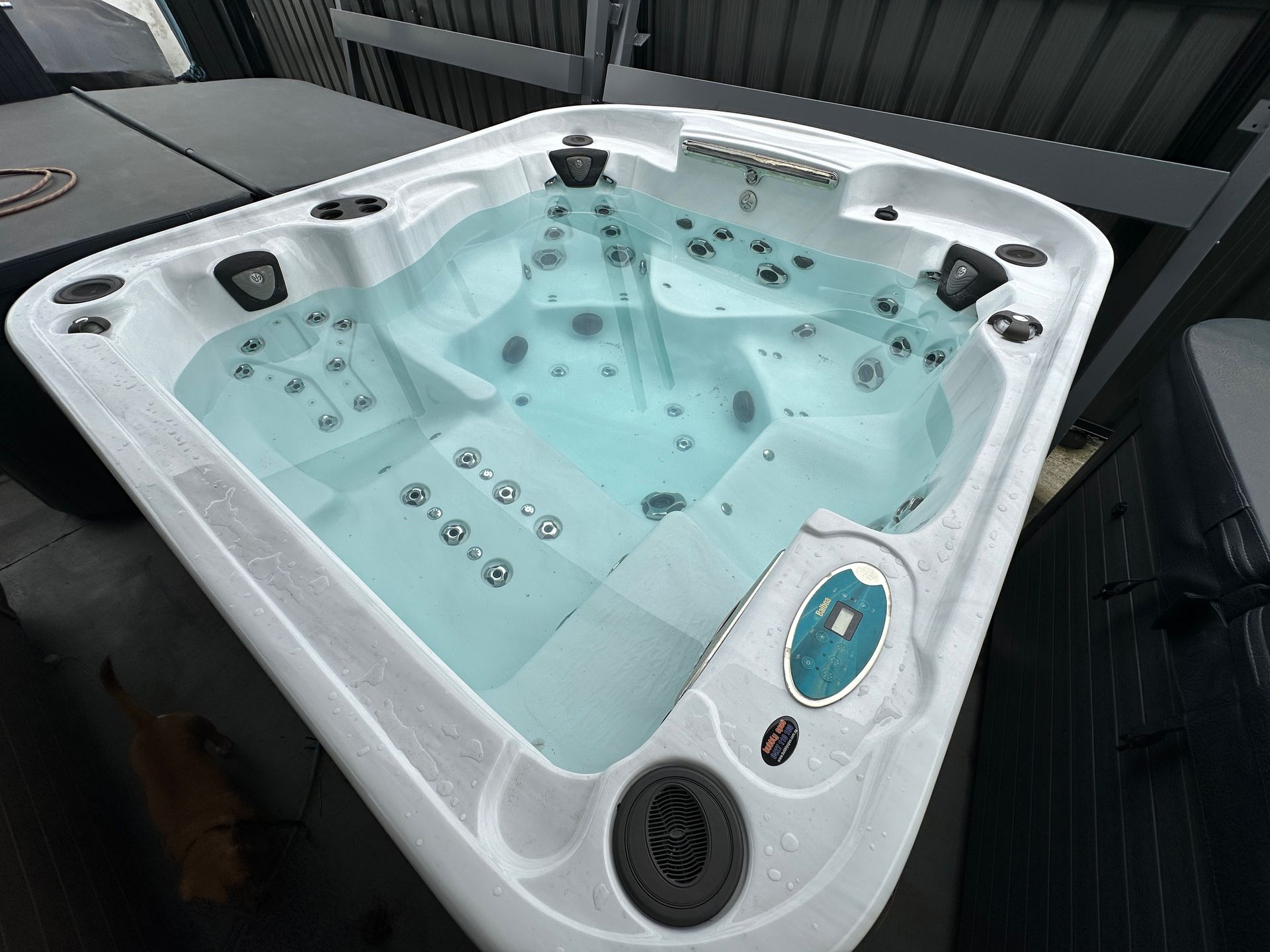 2.3m x 2.3m 6 person spa 32amp hardwired- $6900