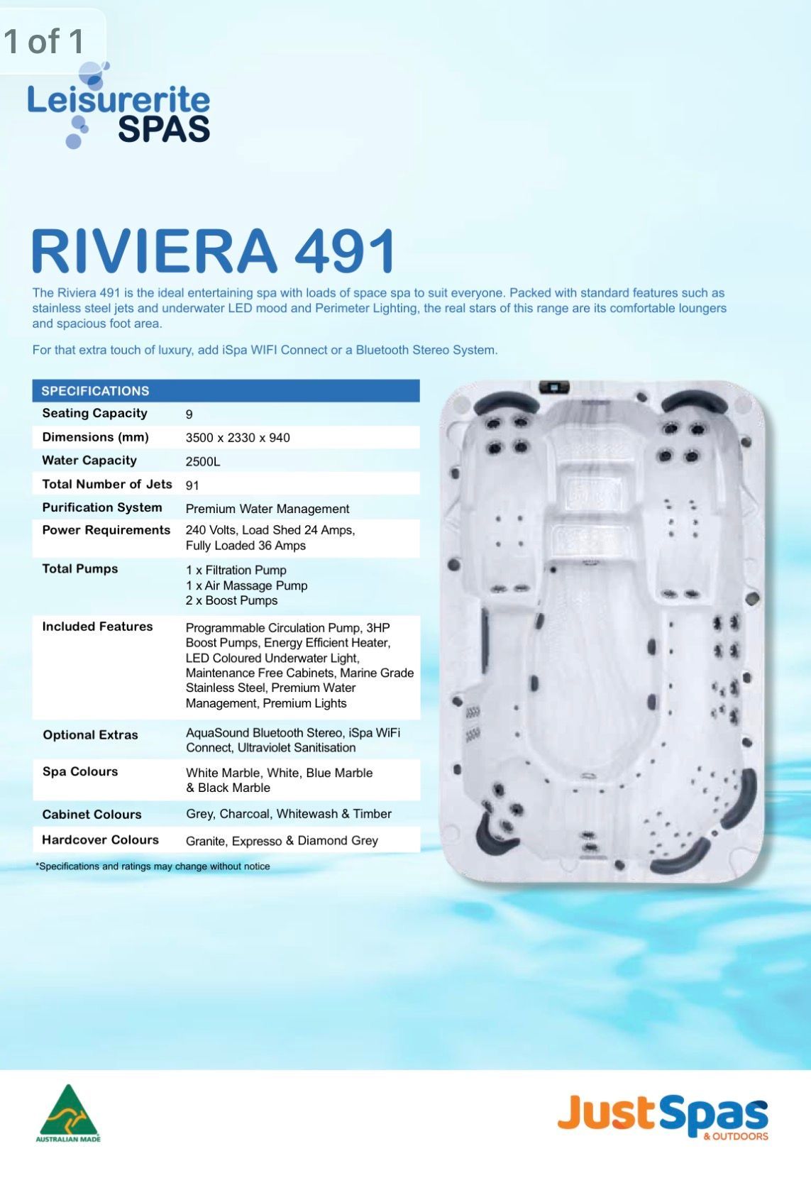 * 32amp hardwired with 2 x booster pumps for maximum massage benefit
