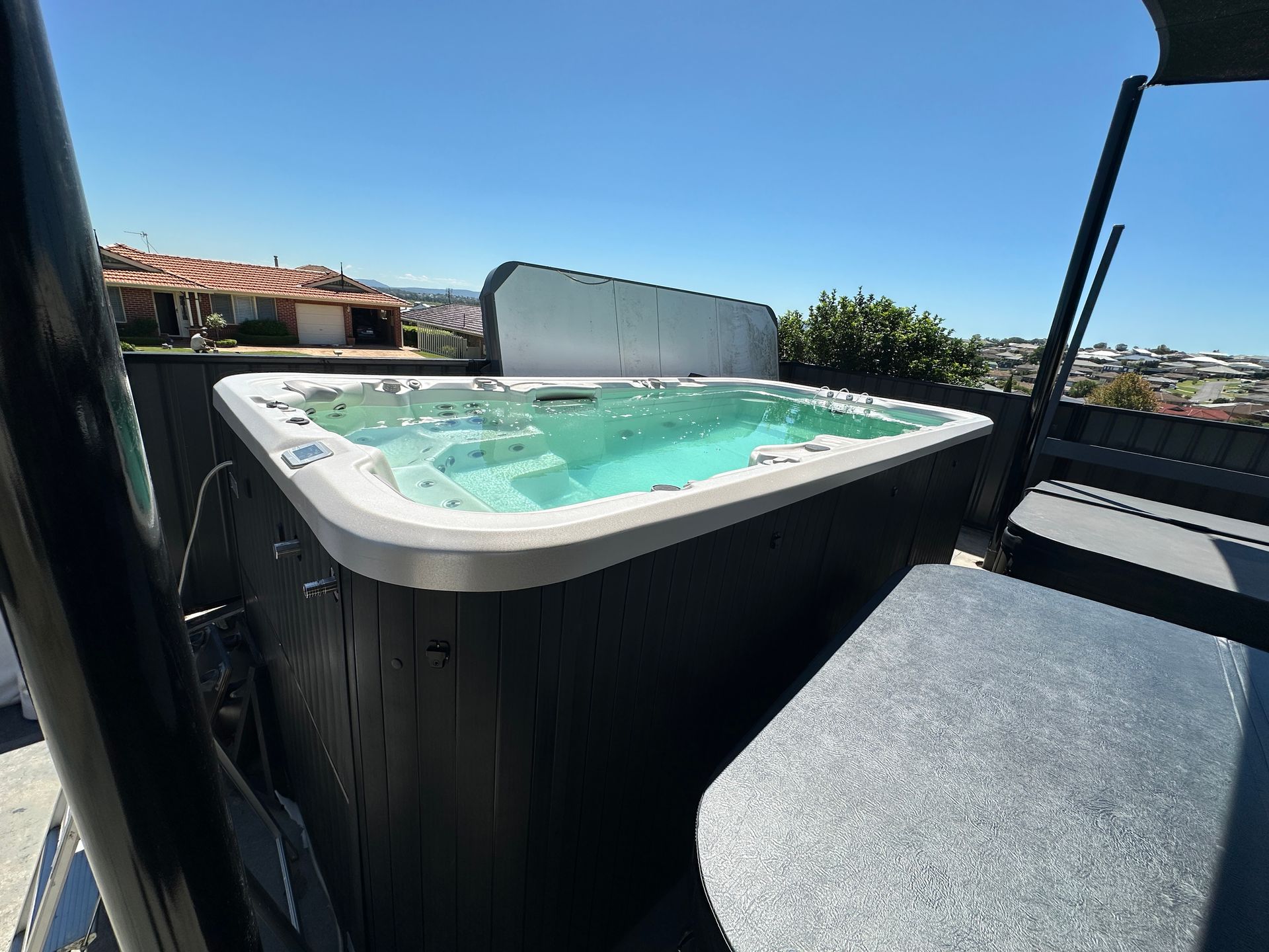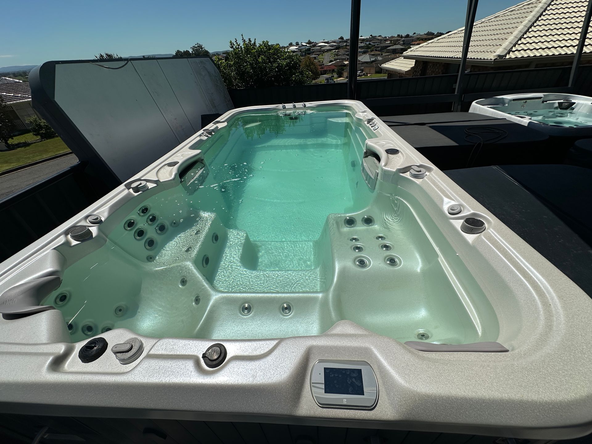 * Brand new grey lockable hardcover included. UV sanitisation system, Steel frame and insulated shell. All quality features you'd want in a swim spa.